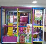 Estructura elaborado en tubo negro estructural de 1”¼ y 1” x 2mm de espesor pintado al horno con anticorrosivo color aluminio, totalmente acolchado con espuma zebra de 1” de alta densidad y forrado en lona Concord de alegres colores, malla alquitranada de 2”½ N°36, fibra de vidrio de 4mm de espesor para pisos, toboganes pintado al horno para mayor durabilidad, los túneles de cinta confeccionado con nylon 100%, totalmente enmallado
