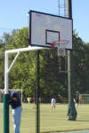 Tablero de básquet rectangular, diseñado en aglomerado de pino de 18mm,pintado al duco color blanco con rayas negras o rojas, Estructura en tubo negro redondo de 4”x3mm, pintado en color blanco, Fabricado con la mejor calidad para todos nuestros clientes.
