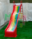 Resbaladera Diseñada en fibra de vidrio de 4mm de espesor, pintada con resina hielco de colores y Escalera fabricada en tubo cuadrado de 7/8, con escalones de madera huairuro